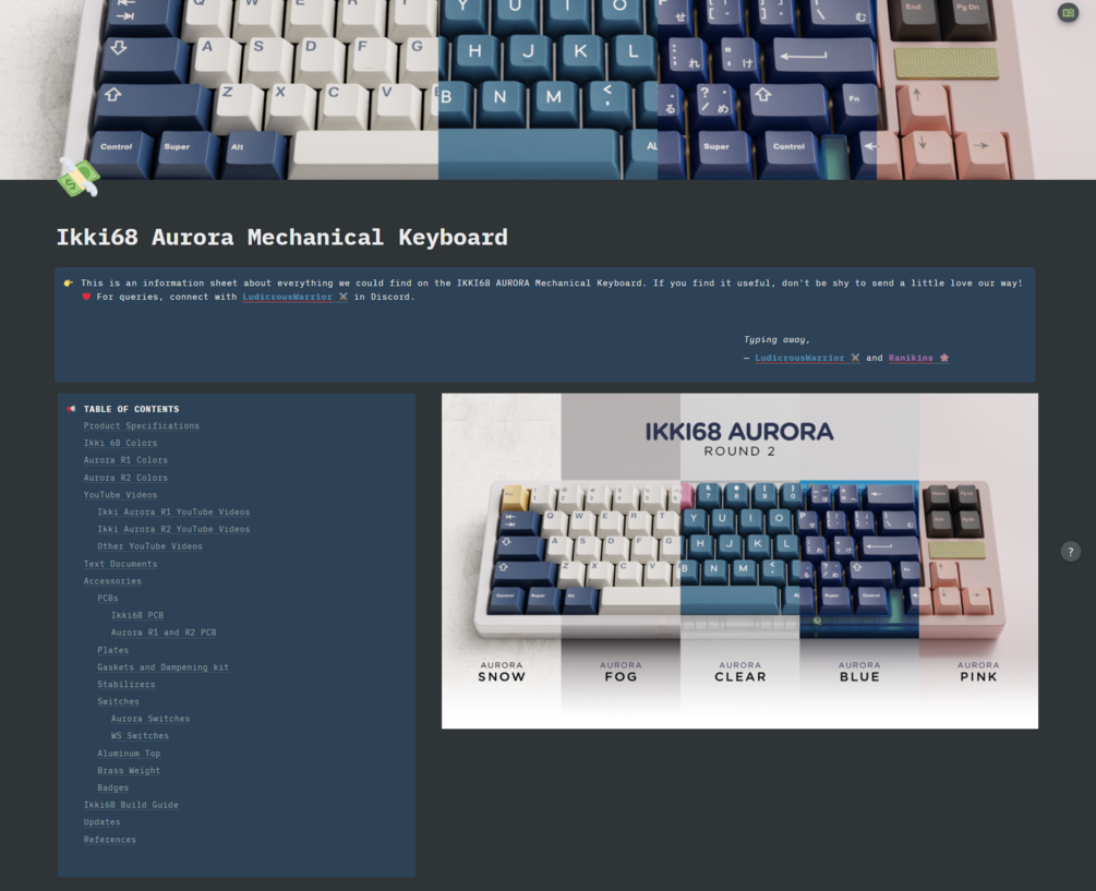 This is an information sheet about everything we could find on the IKKI68 AURORA Mechanical Keyboard. To access the page, just put "0" for a fair price and click "I want this!". If you find it useful, don't be shy to send a little love our way! ❤ For queries, connect with LudicrousWarrior ⚔ in Discord.